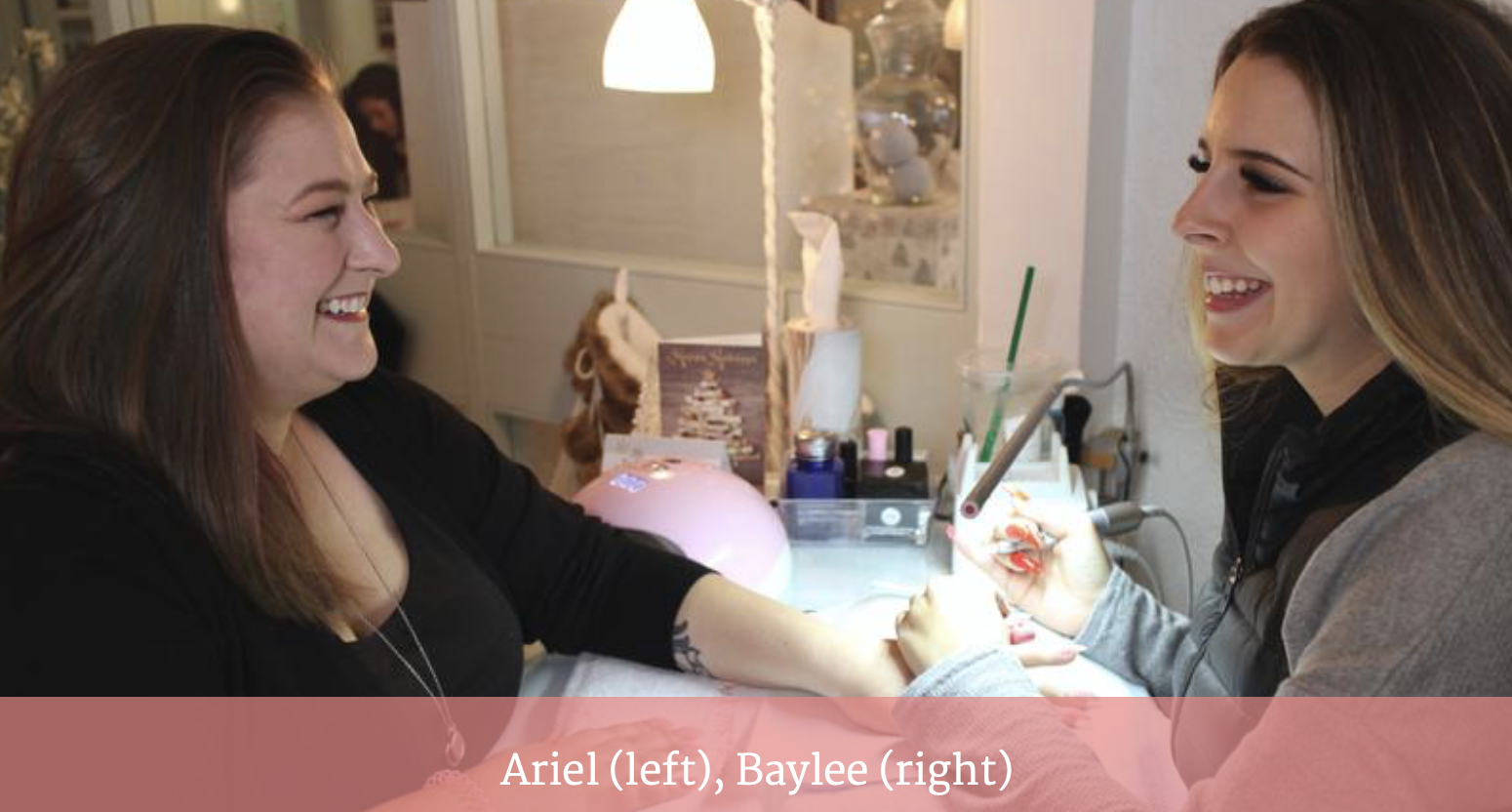 “Sitting down with my nail tech is like visiting with a friend. It’s taking the time out of my busy schedule to do something for myself. There is always laughing and catching up and when we are finished, she has created a look to make me feel pretty and feminine and ready to conquer everyday life again!”